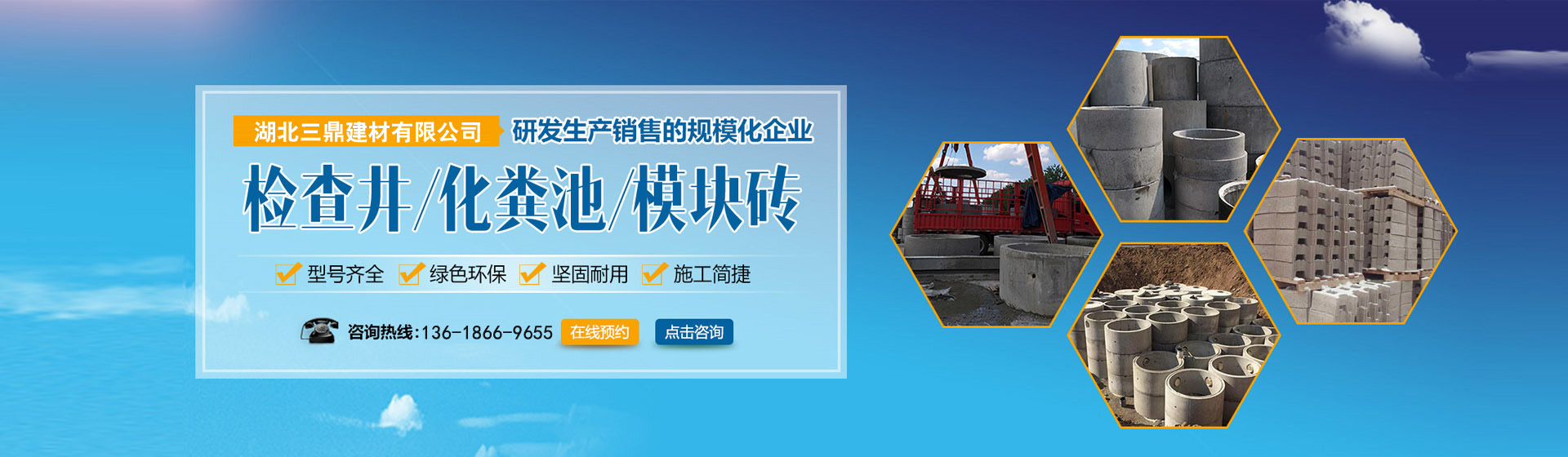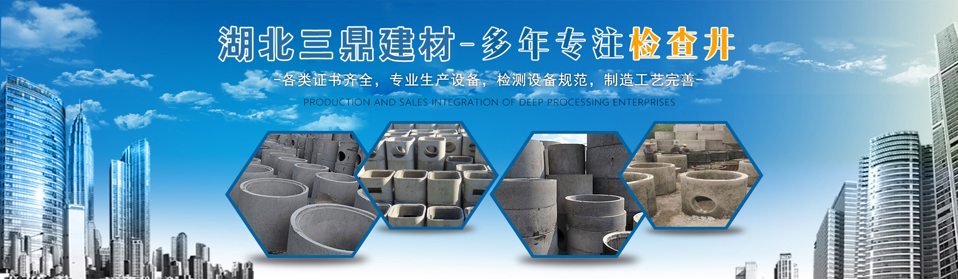湖北三鼎建材有限公司是專業的水泥制品生產廠家,成品齊全原廠直銷價格質量可保證!公司主營產品:鋼筋混凝土排水管、頂管、開挖管、檢查井、鋼筋混凝土隔離墩、水泥蓋板等各類常規水泥制品及非標水泥構件,成品水泥檢查井,雨水井,污水井,沉泥井,沉沙井,水泥管,排水管等! 三鼎建材產品主要用于城市地下基礎設施的各類檢查作業,同時也廣泛應用于管道工程建筑;管道和設備安裝;其他建筑安裝,市政道路工程建筑;園林綠化工程施工;設備工程建筑等等。公司隨著市場的發展和客戶的需求,在原有產品的基礎上不斷改進工藝,追求新型、環保、節能,以優良的質量、完善的服務,受到客戶和施工單位的廣泛贊揚。歡迎用戶及設計單位前來訂購,并對本廠的產品、式樣提出寶貴的意見。
